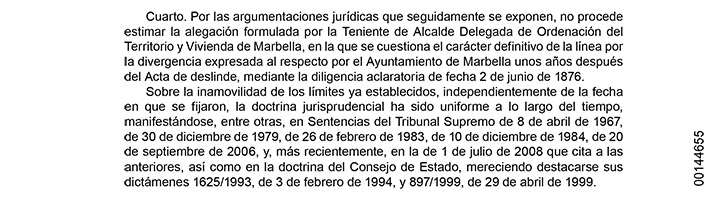 El comportamiento del Ayuntamiento de Marbella resulta de nuevo sorprendente, al mostrar su rechazo a que a la linde histórica, la considerada válida, tuviera un carácter definitivo.