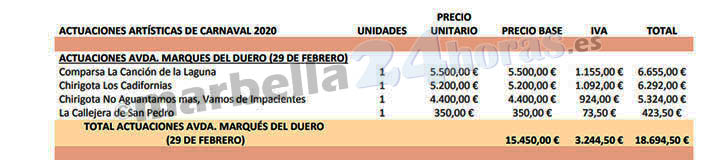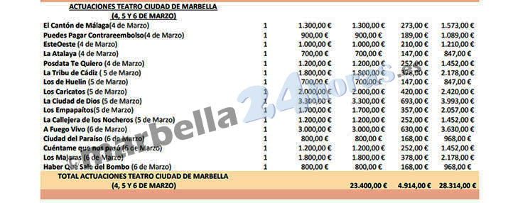 Marbella24horas, se destina a las agrupaciones de fuera del municipio, que se llevan en torno a 76.000 euros.