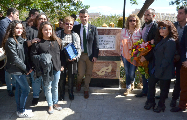 A continuación, se procedió a descubrir el monolito con su nombre, en la plaza que está junto a la sede de la Asociación Carnavalesca, que estaba llena de público. Fueron su viuda y el alcalde los que retiraron la bandera de Andalucía que la cubría.